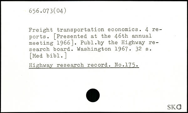 Freight transportation economics. 4 reports. [Presented at the 46th annual meeting 1966].
