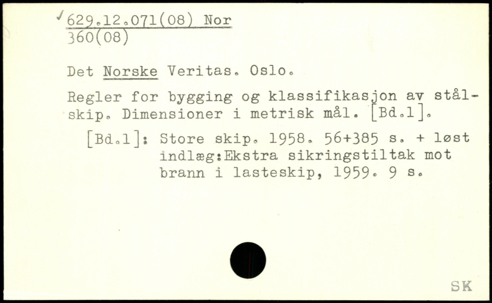 Det Norske Veritas, Oslo, Regler for bygging og klassifikasjon av stålskip, Dimensioner i metrisk mål. [Bd,l].