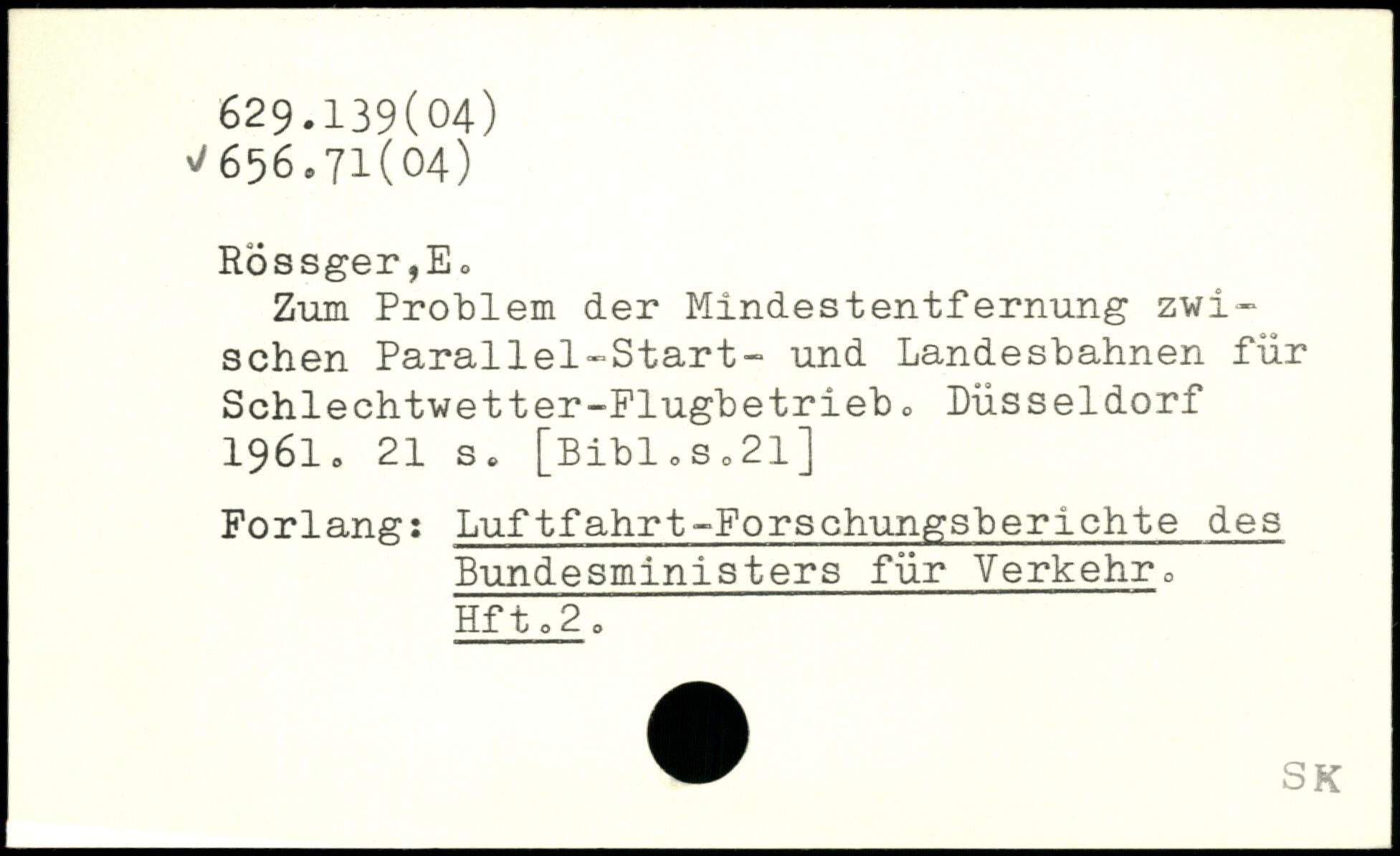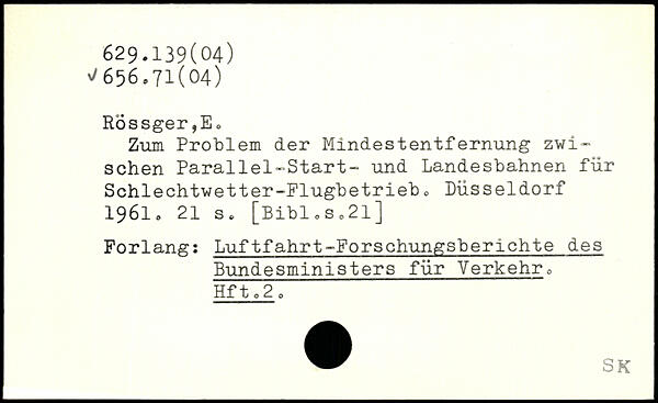Zum Problem der Mindestentfernung zwischen Parallel-Start- und Landesbahnen für Schlechtwetter-Flugbetriebo Düsseldorf 1961.
