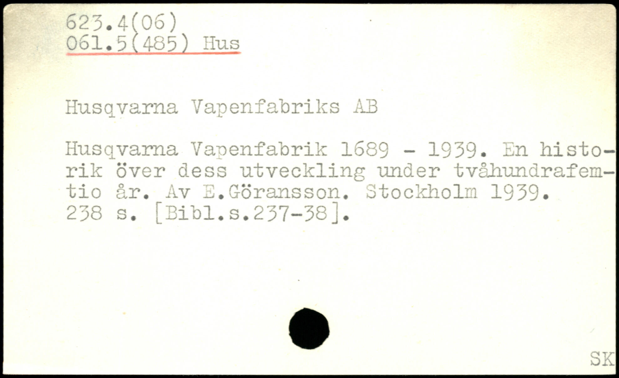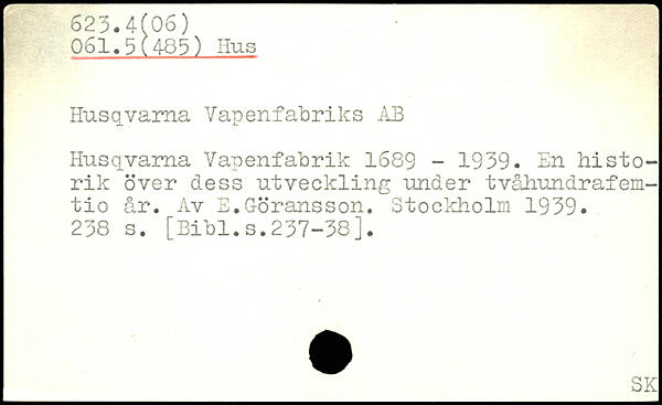 Husqvarna Vapenfabrik 1689 - 1939. En histo-rik over dess utveckling under tvaJiundrafemtio ar. Ay E.G-oransson.