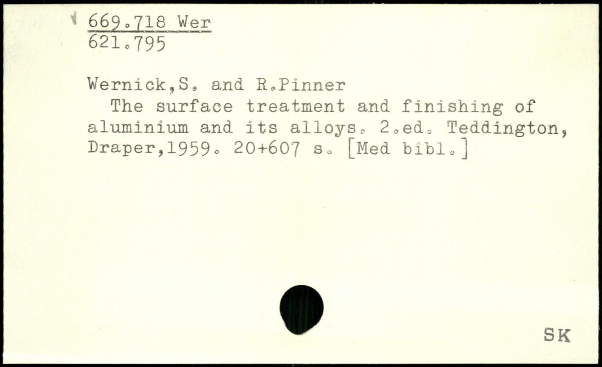Wernick,S. and R,Pinner The surface treatment and finishing of aluminium and its alloys, 2,ed.