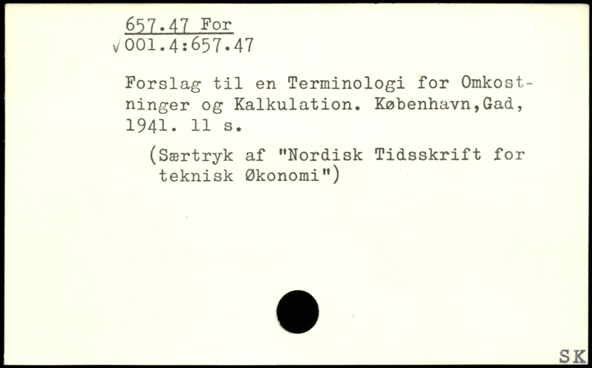 Forslag til en Terminologi for Omkostninger og Kalkulation.