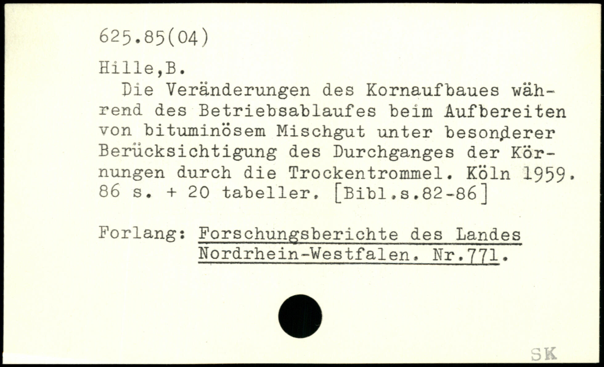 Die Veränderungen des Kornaufbaues während des Betriebsablaufes beim Aufbereiten von bituminösem Mischgut unter besonderer Berücksichtigung des Durchganges der Körnungen durch die Trockentrommel.