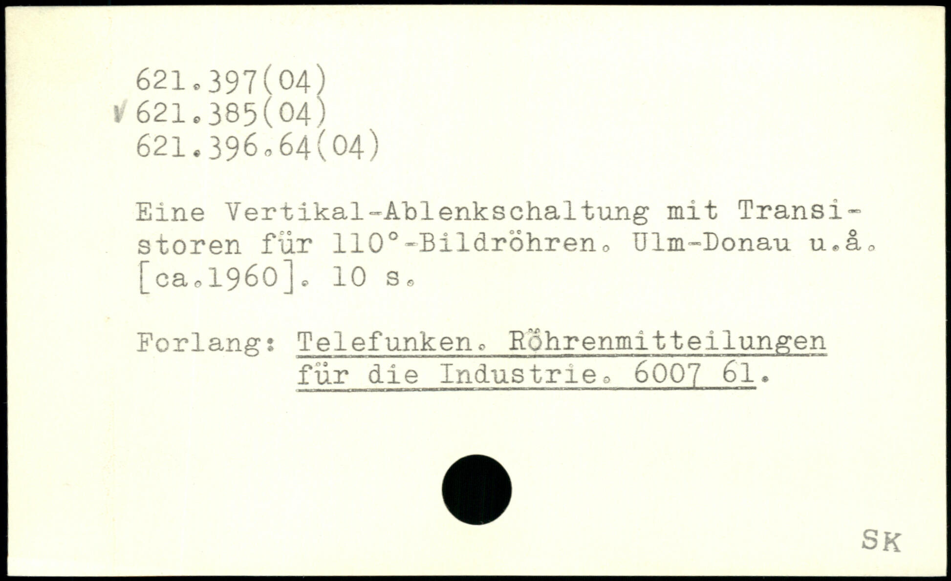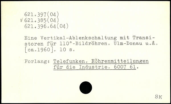 Eine Vertikal-Ablenkschaltung mit Transi-stören für 110.-Bildröhreno Ulm-Donau u.äo [cao 1960].
