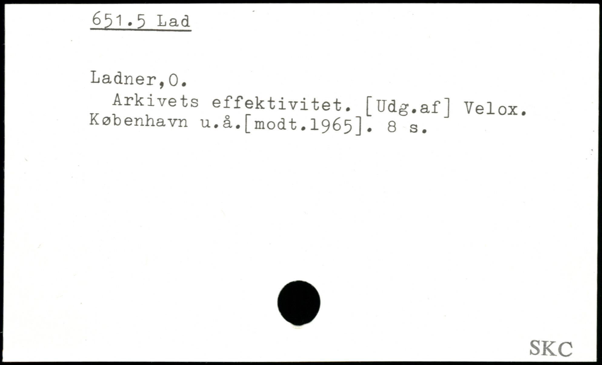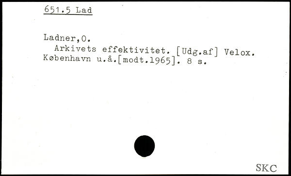 Arkivets effektivitet. [Udg.af] Velox. København u.å.[modt.1965].