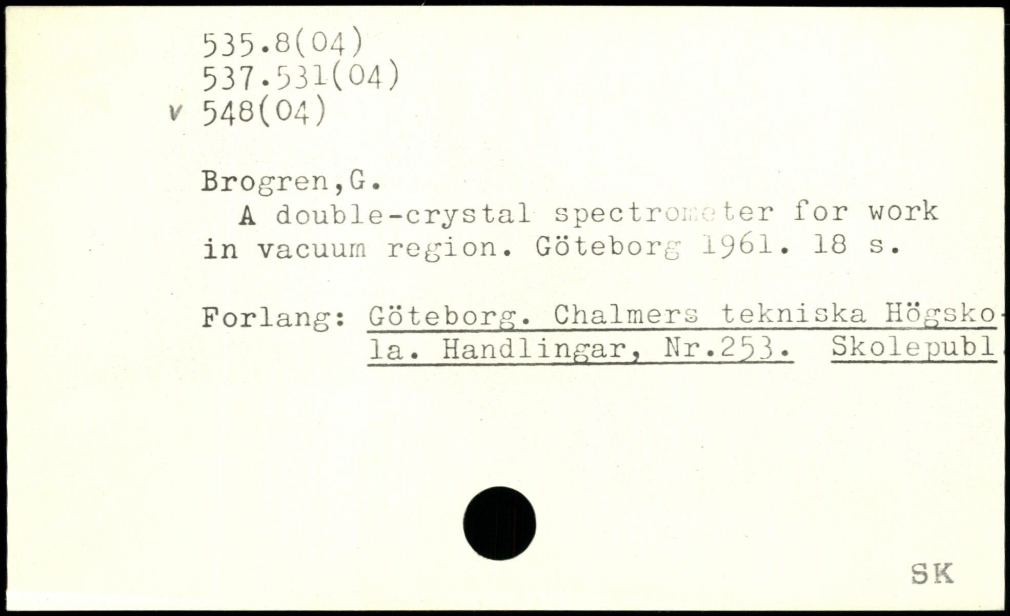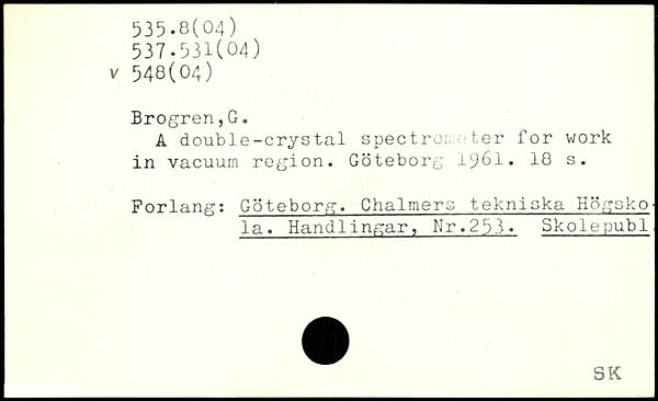 A double-crystal spec tron: o ter for work in vacuum region. Göteborg 1961.