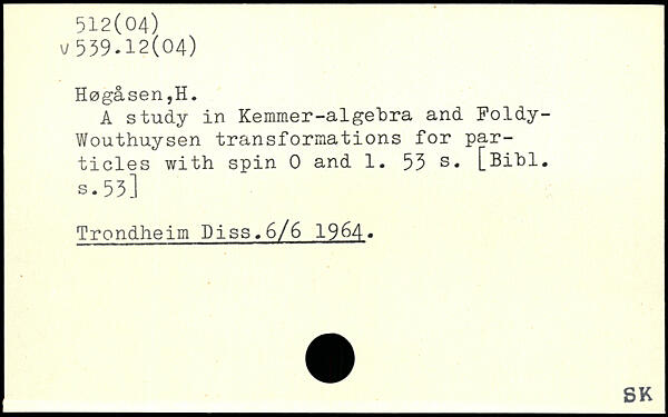 A study in Kemmer-algebra and Foldy-Wouthuysen transformations for particles with spin 0 and 1.