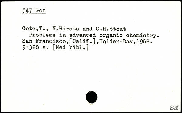Problems in advanced organic chemistry. San Francisco,[Calif.],Holden-Day,1968.