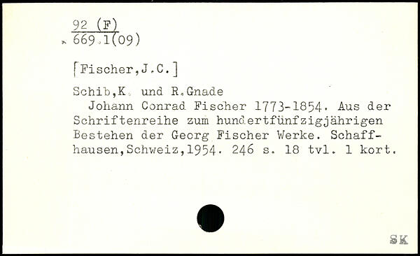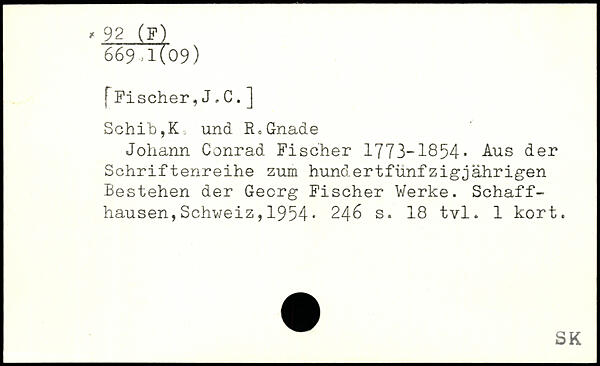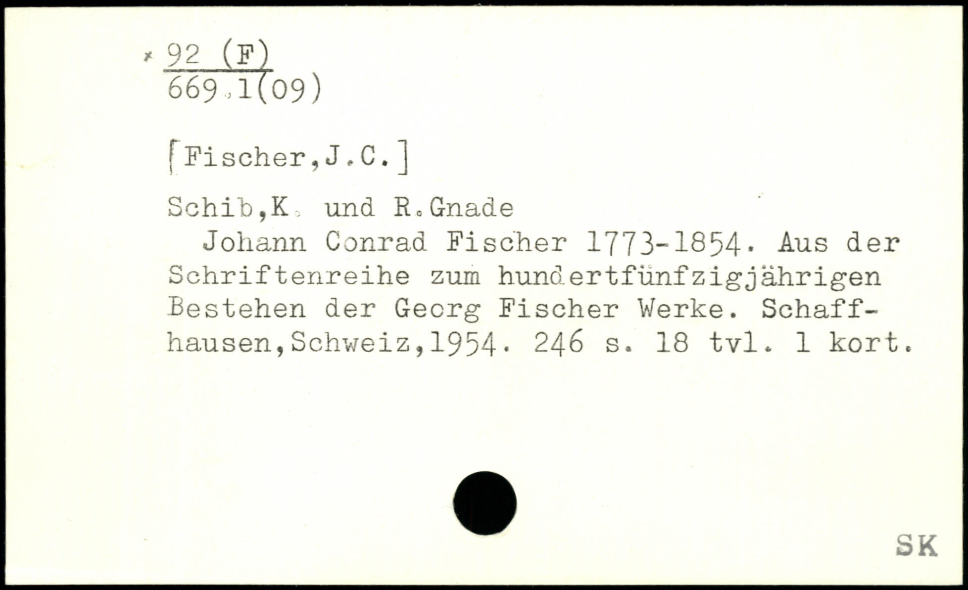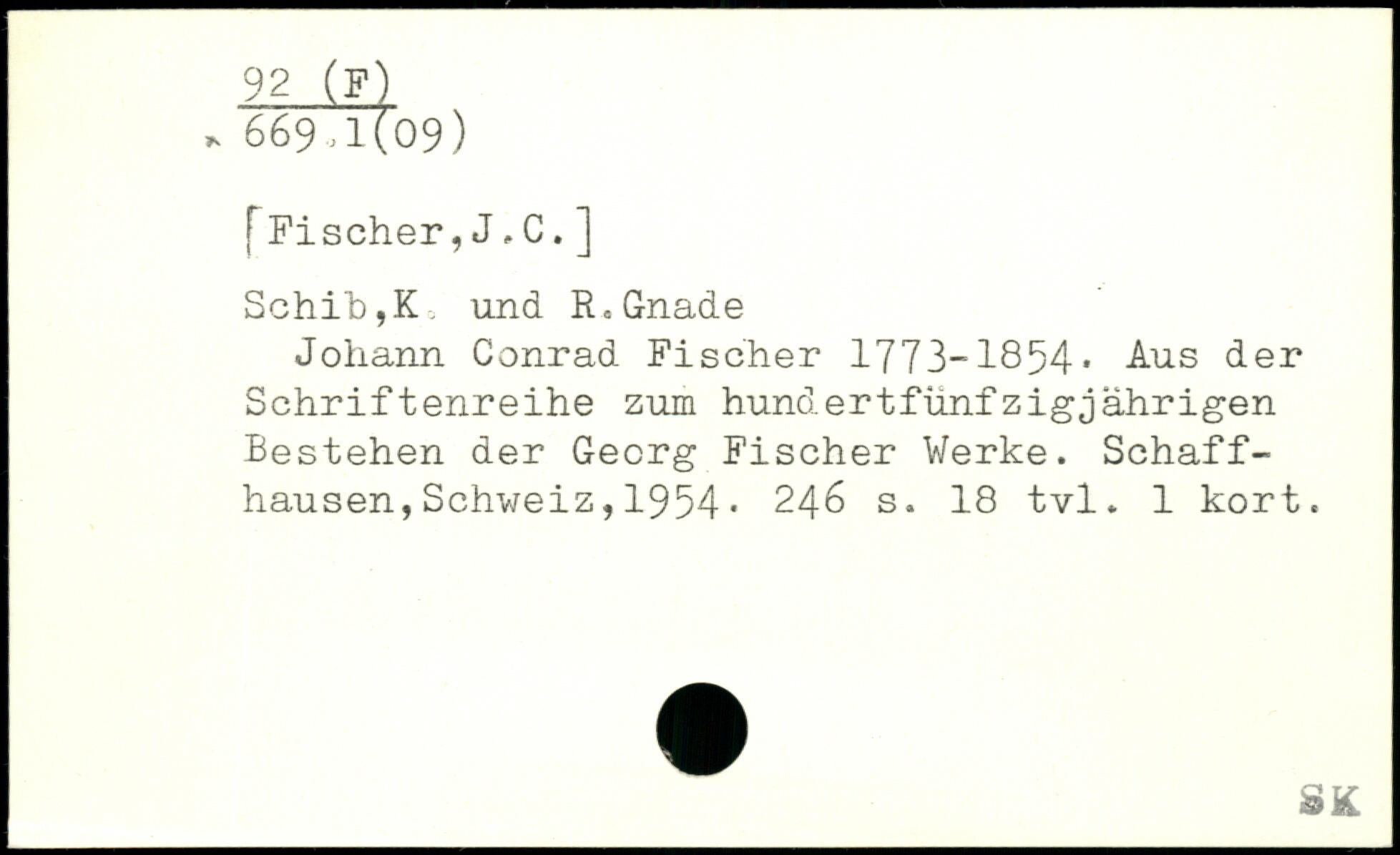 fFischer,J.C.] Sahib,K und R=Gnade Johann Conrad Fischer 1773-1854. Aus der Schriftenreihe zum hundertfünfzigjährigen Bestehen der Georg Fischer Werke.