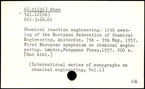 Chemical reaction engineering. 12th meeting of the European Federation of Chemical Engineering, Amsterdam, 7th - 9th May, 1957. First European symposium on chemical engineering