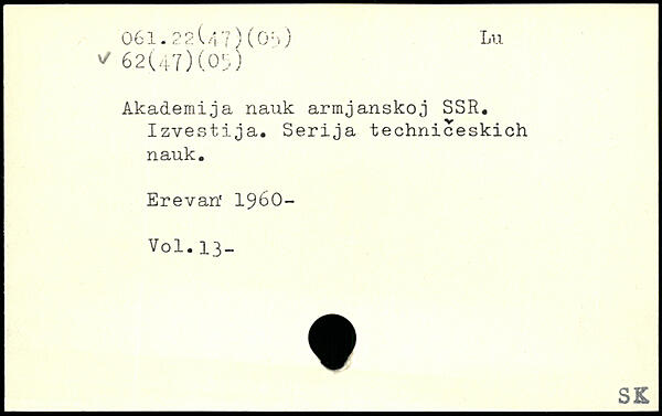 Akademija nauk armjanskoj SSR. Izvestija. Serija techniceskich nauk. Erevan' 1960-V0I.13-