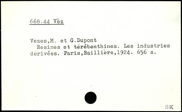 Résinés et térébenthines. Les industries dérivées. Paris,Ba1111ère,1924.