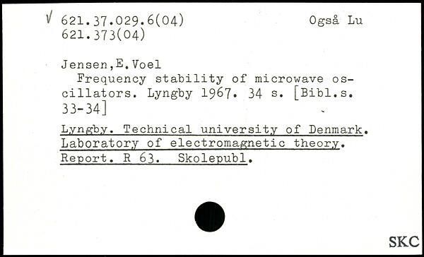J ensen,E.Voel Frequency stability of microwave oscillators. Lyngby 1967