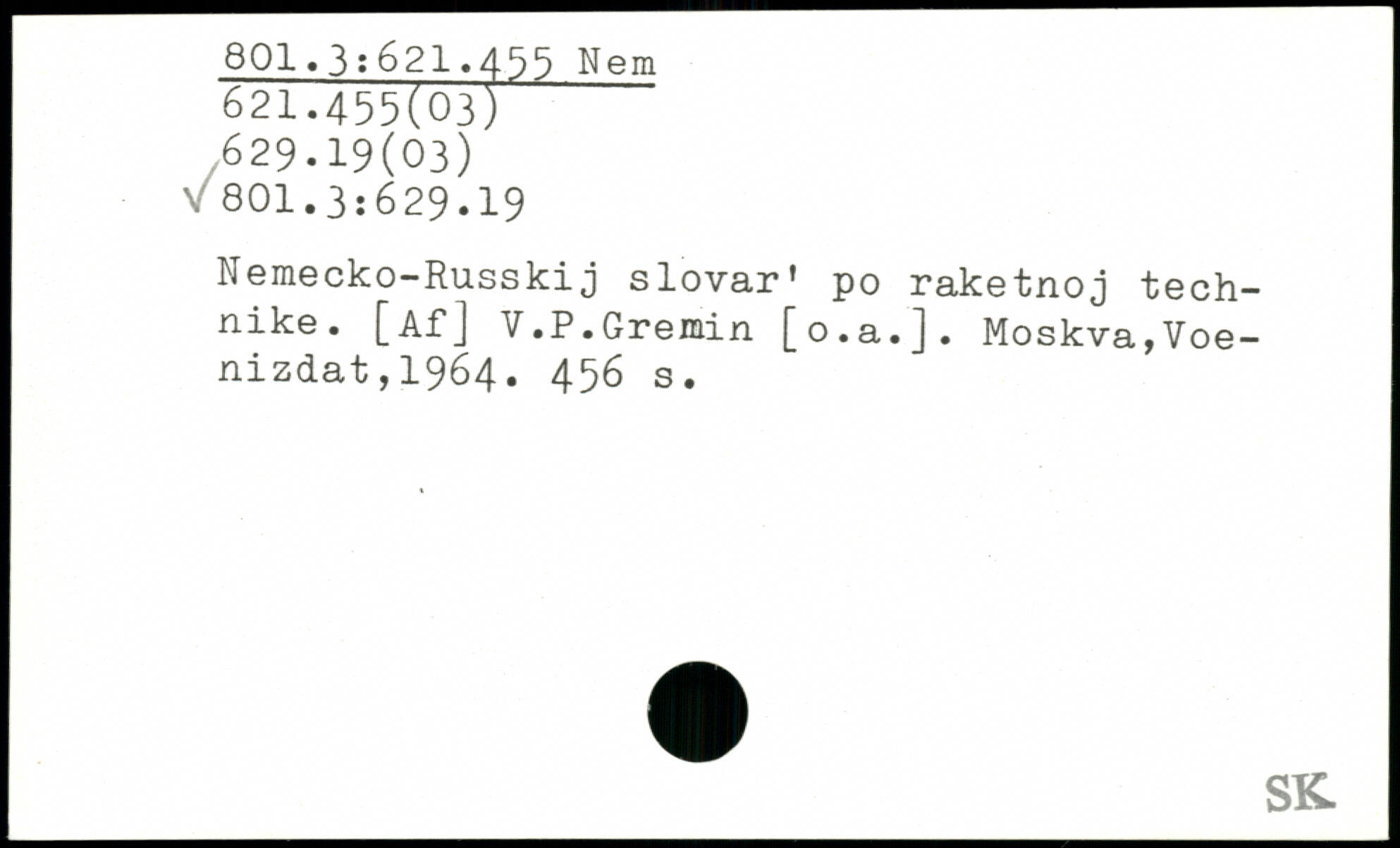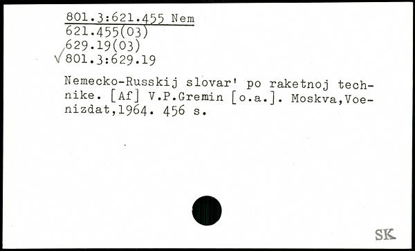 Neraecko-Russkij slovar' po raketnoj tech-nike. [Af] V.P.Gremin [o.a.].