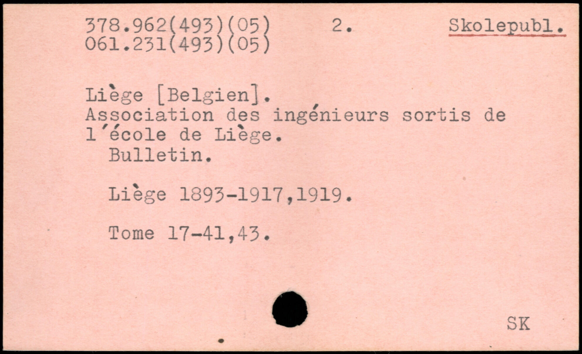 Liège [Belgien]. Association des ingénieurs sortis de l'école de Liège. Bulletin. Liège 1893-1917,1919. Tome 17-41,43. W SK