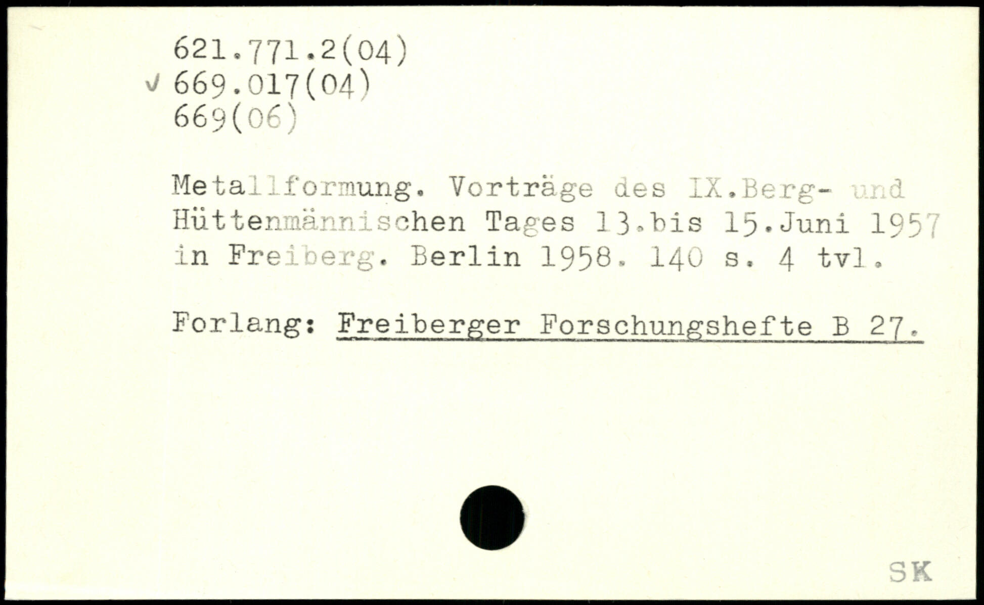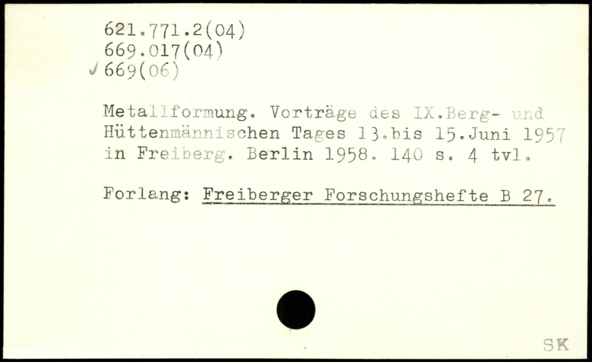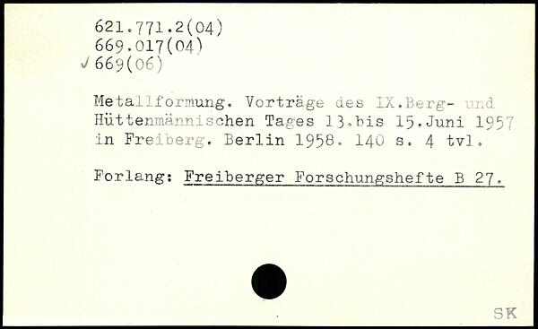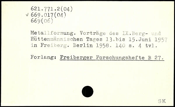 Metallformung. Vorträge des IX.Berg- und Hüttenmännischen Tages 13,bis 15.Juni 1957 in Freiberg.