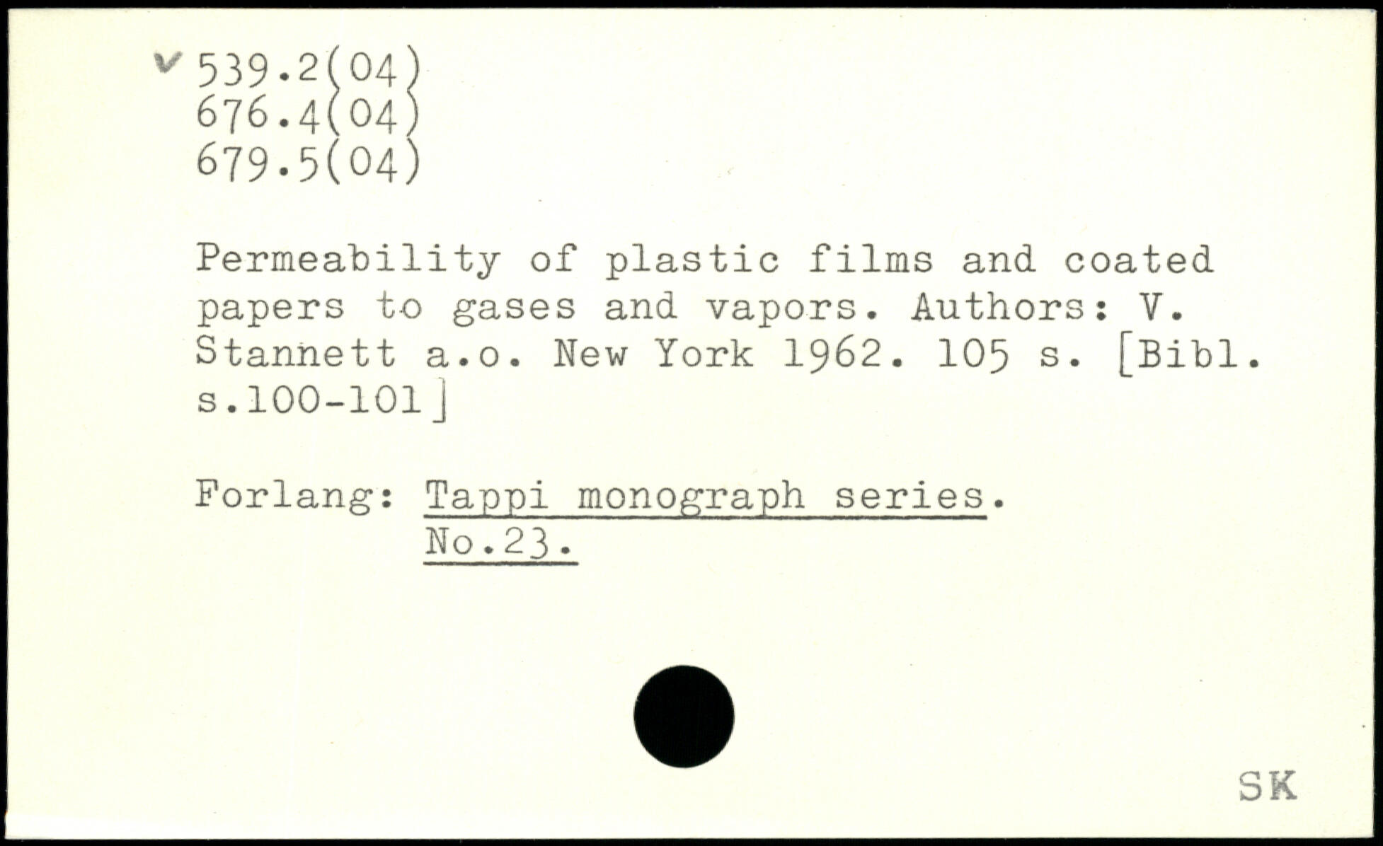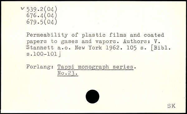Permeability of plastic films and coated papers to gases and vapors. Authors: V. Stannett a.o.