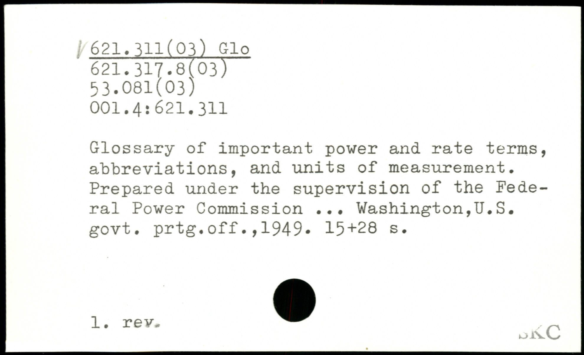 Glossary of important power and rate terms, abbreviations, and units of measurement. Prepared under the supervision of the Federal Power Commission ... Washington,U.S. govt. prtg.off.,1949-