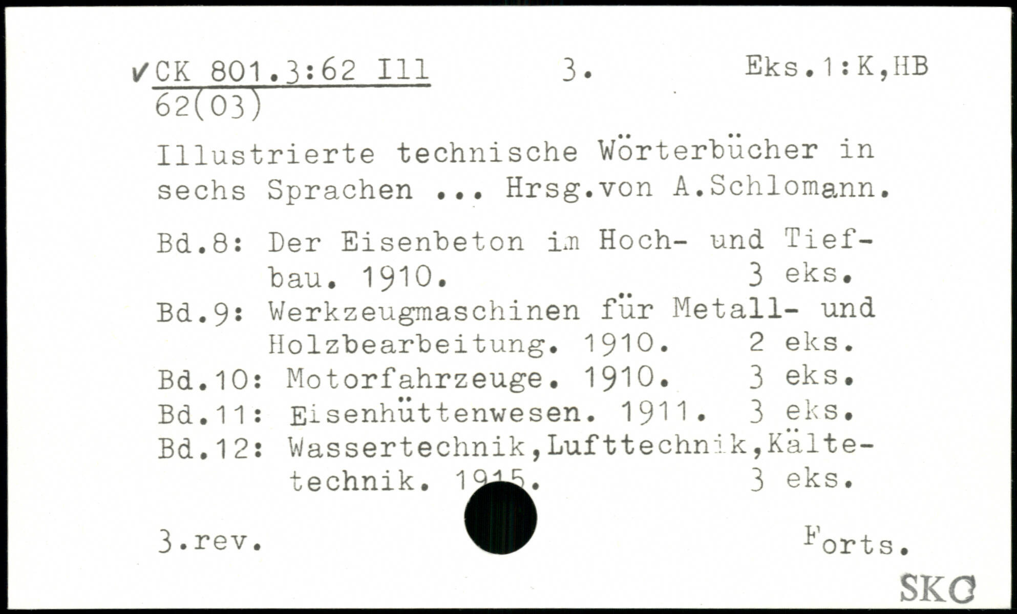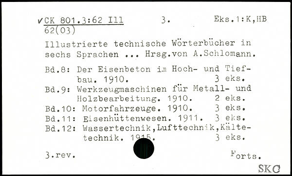 Illustrierte technische Wörterbücher in sechs Sprachen ... Hrsg.von A.Schlomann.