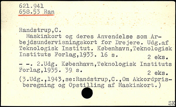 Maskinkort og deres Anvendelse som Ar-bejdsundervisningskort for Drejere. Udg.af 'Teknologisk Institut.