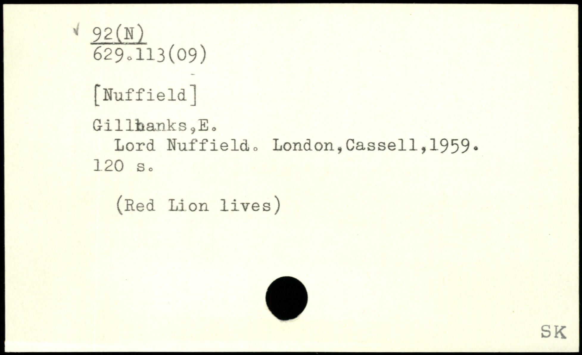 Lord Nuffieldo London,Cassell,1959, 120 So