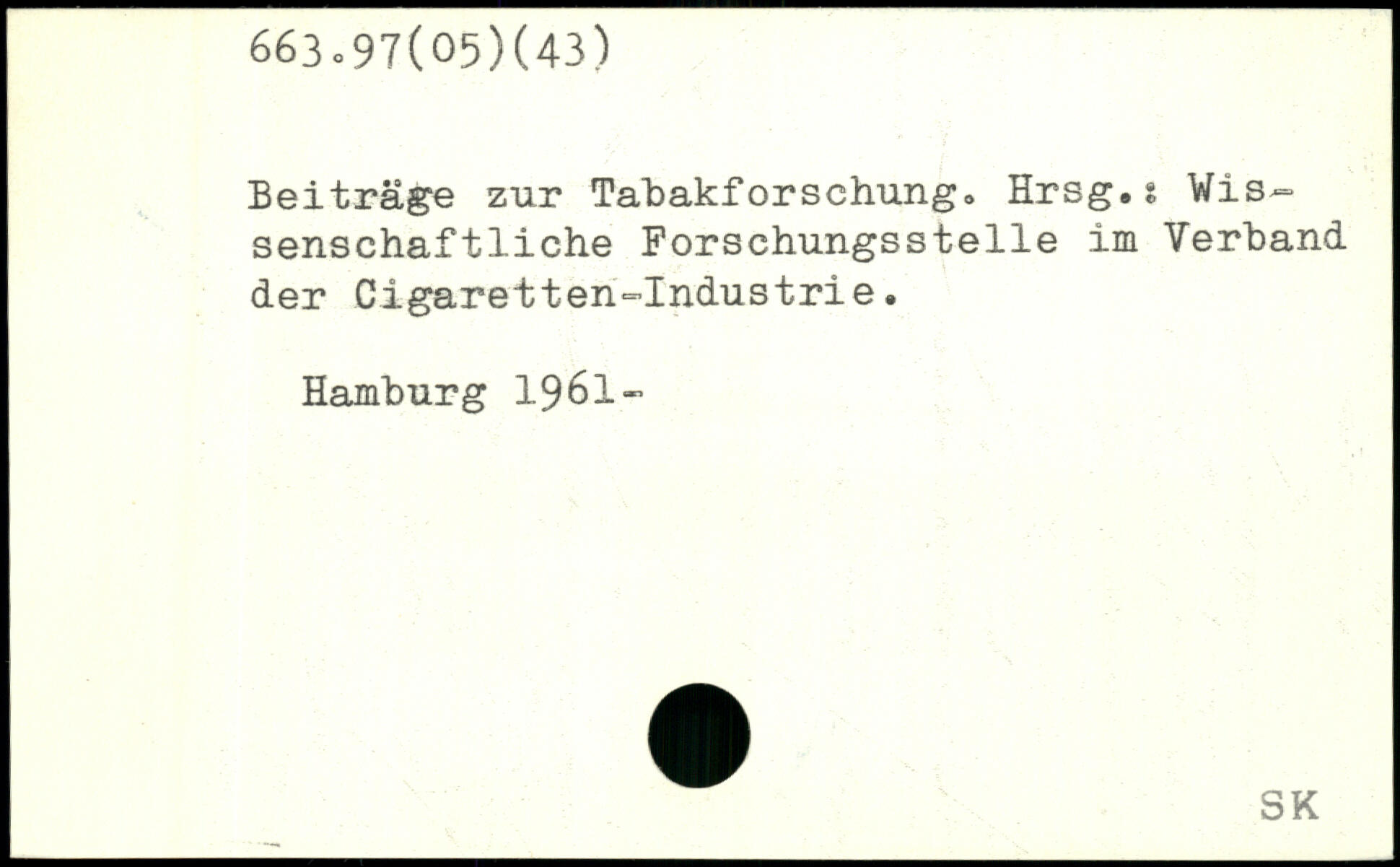 Beiträge zur Tabakforschung, Hrsg.s Wissenschaftliche Forschungsstelle im Verband der Cigaretten-Industrie.