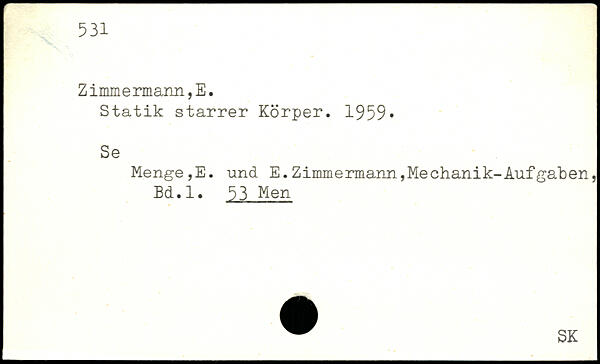 Statik starrer Körper. 1959, Se Menge,E. und. E. Zimmermann, Mechanik- Auf gaben, Bd.l. 53 Men