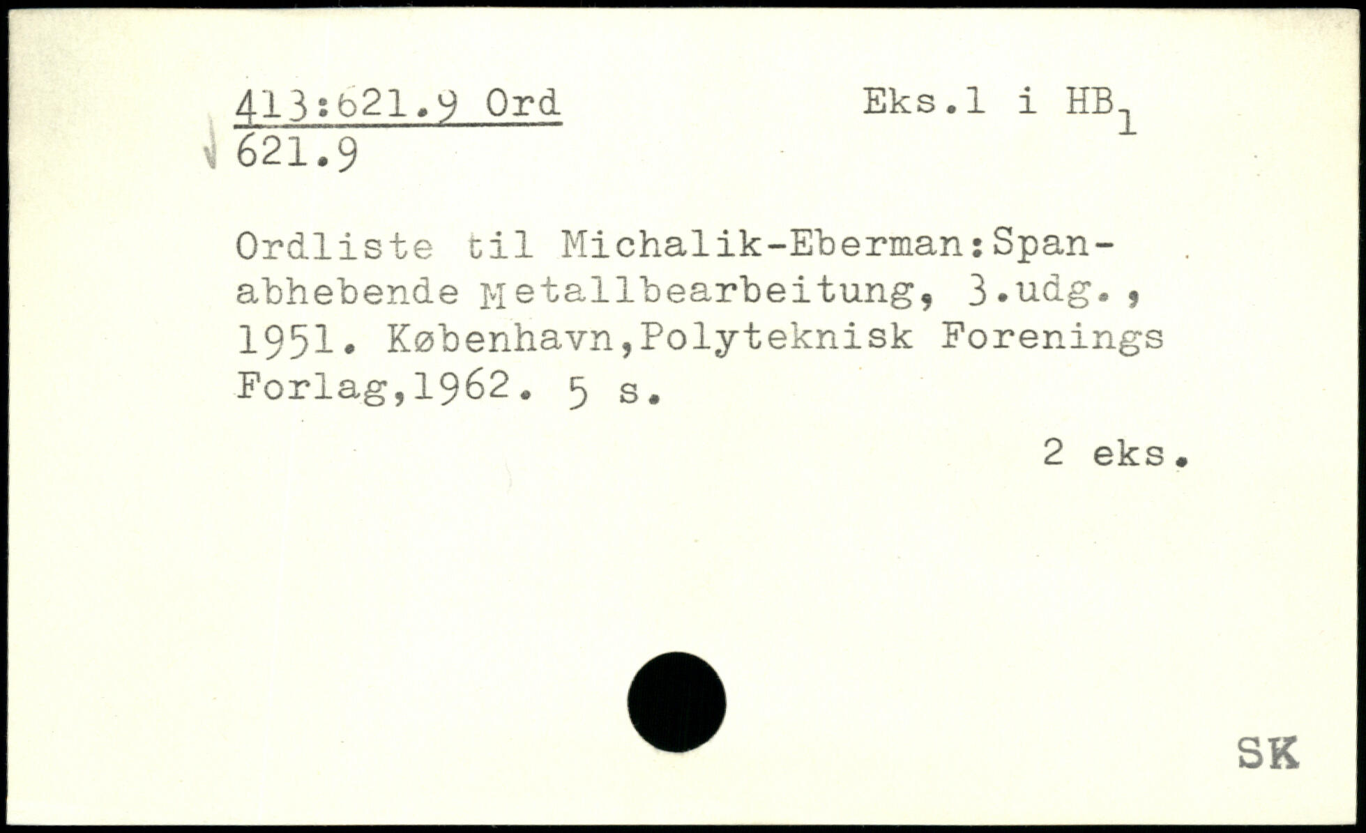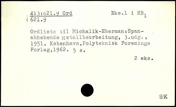 Ordliste til Michalik-Eberman:Span-abhebende Metailbearbeitung, 3-udg. , 1951.