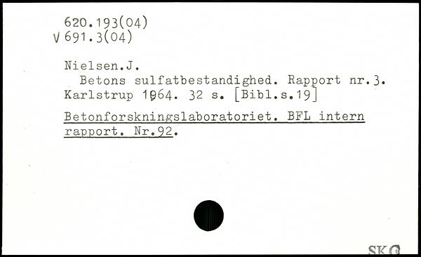 Betons sulfatbestandighed. Rapport nr.3. Karlstrup 1964.
