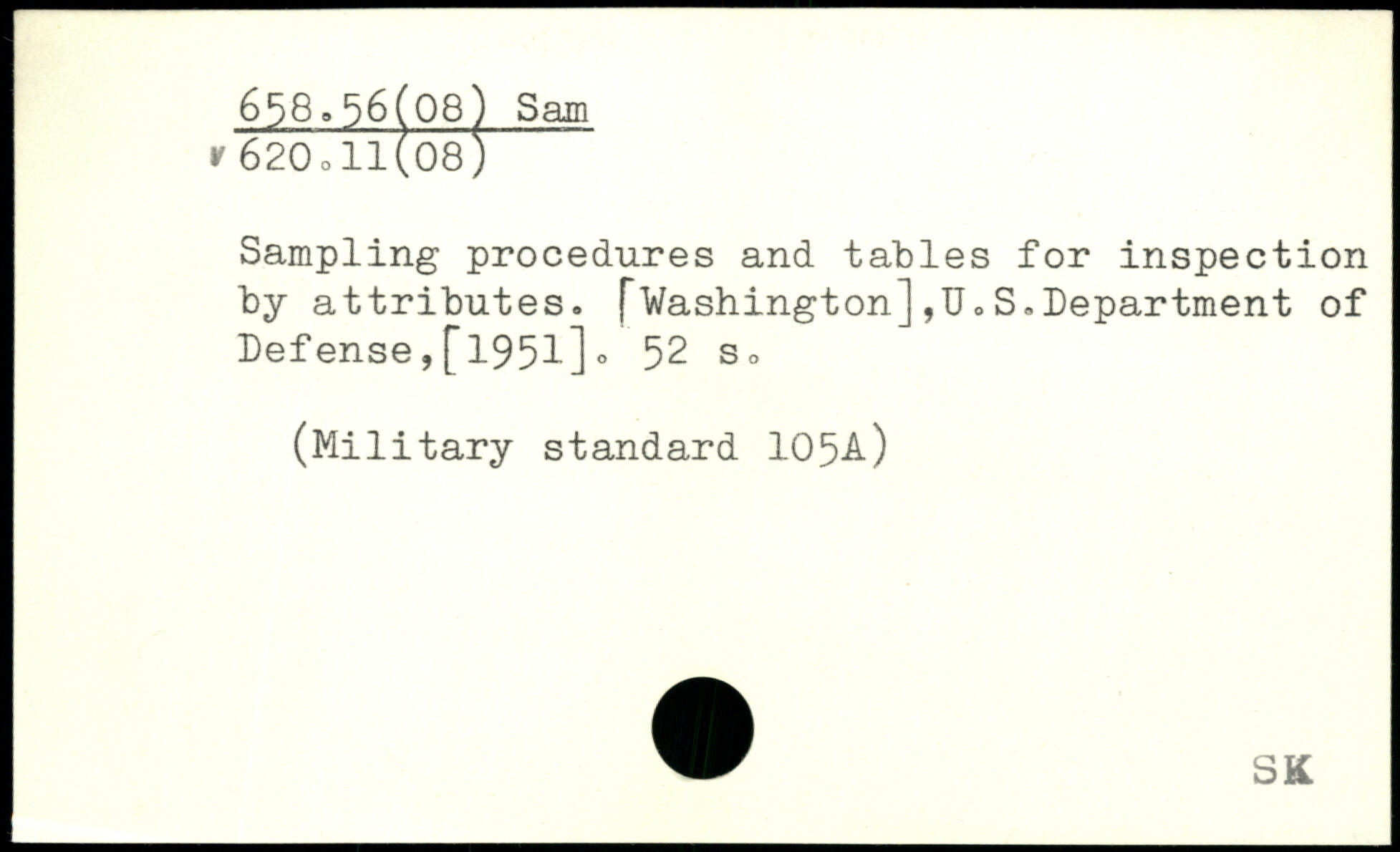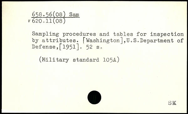 Sampling procedures and tables for inspection by attributes. (~Washington] ,U.S.Department of Defense,[1951].