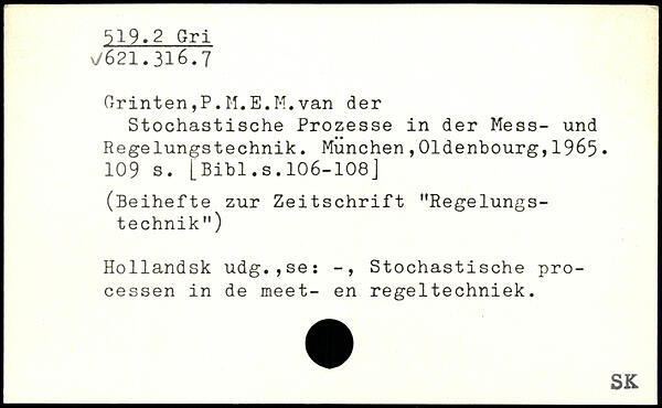Orinten,P.M.E.M.van der Stochastische Prozesse in der Mess- und Regelungstechnik.