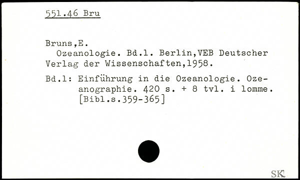 Ozeanologie. Bd.l. Berlin,VEB Deutscher Verlag der Wissenschaften,1958. Bd.l: Einführung in die Ozeanologie. Ozeanographie.