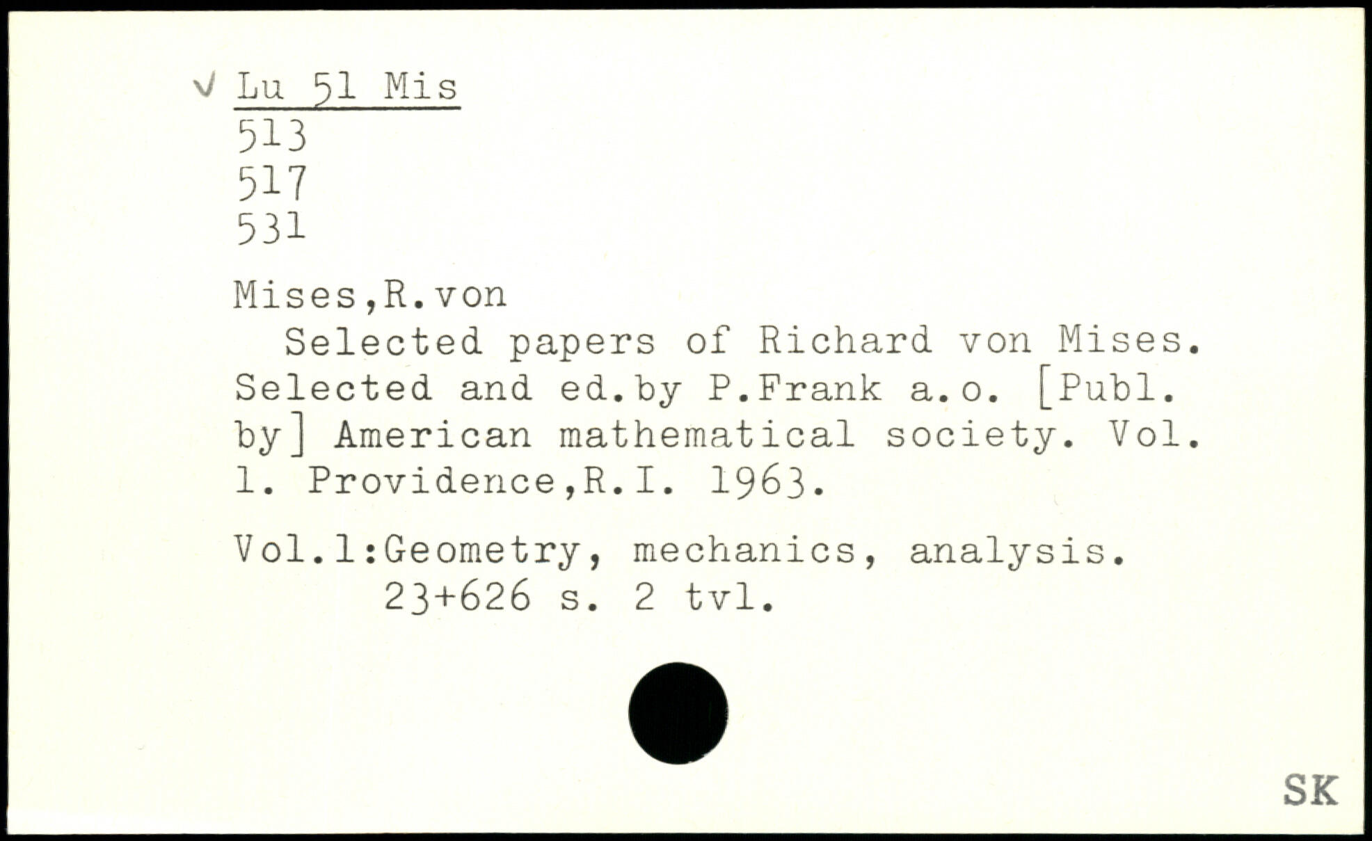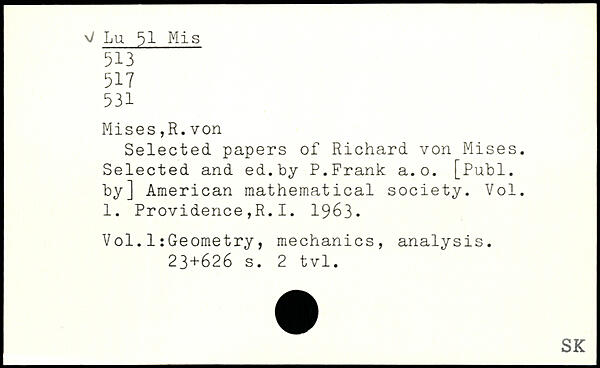 Selected papers of Richard von Mises. Selected and ed.by P.Frank a.o.