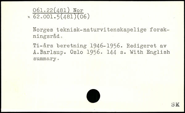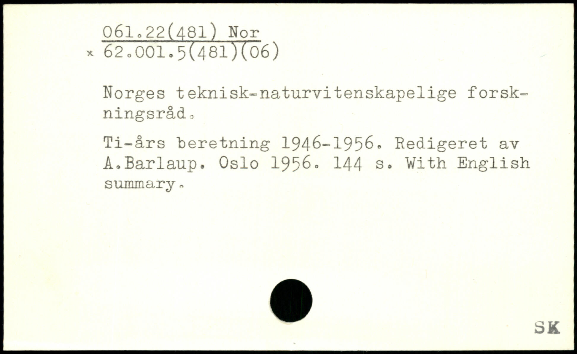 Norges teknisk-naturvitenskapelige forskningsrådo Ti-års beretning 1946-1956. Redigeret av A.Barlaup. Oslo 1956.