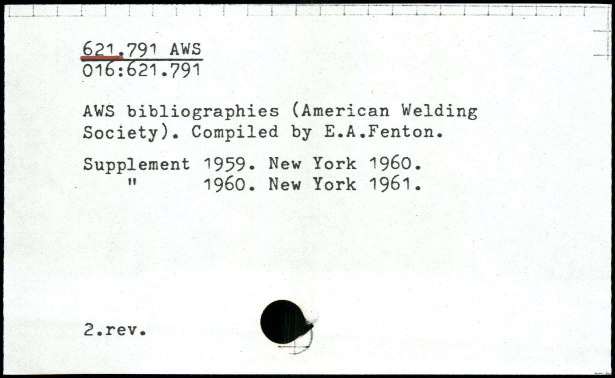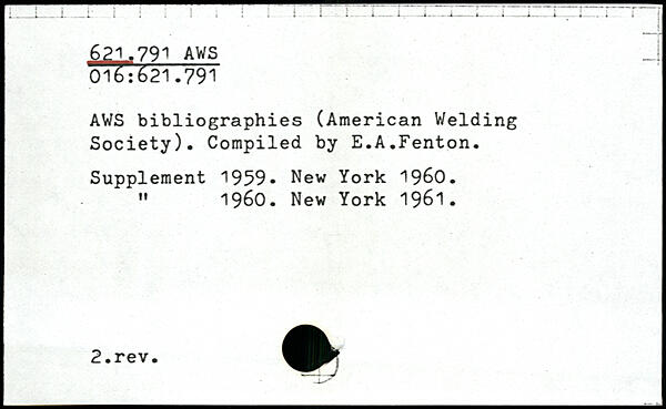 AWS bibliographies (American Welding Society). Compiled by E.A.Fenton. Supplement 1959.
