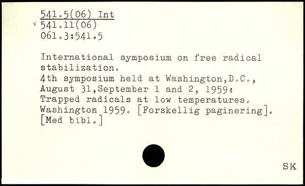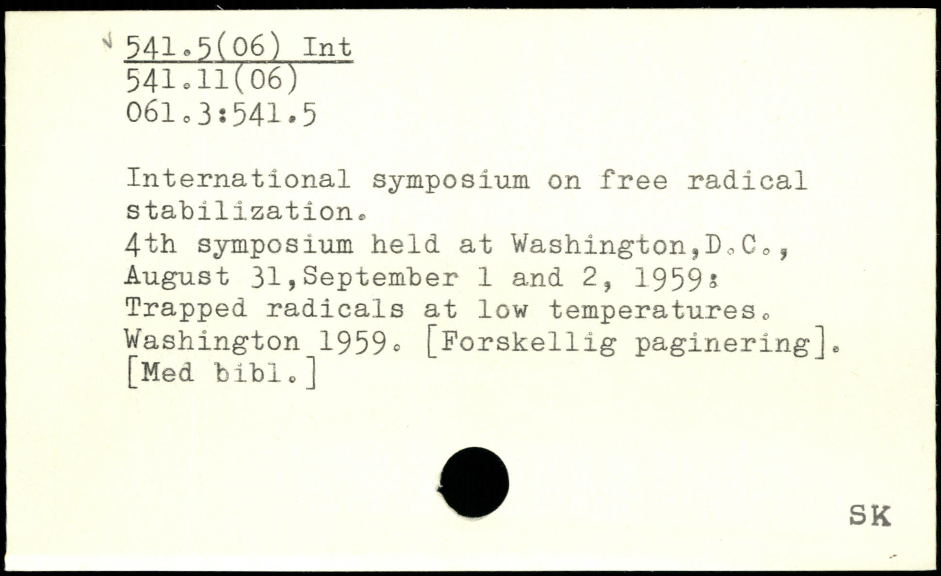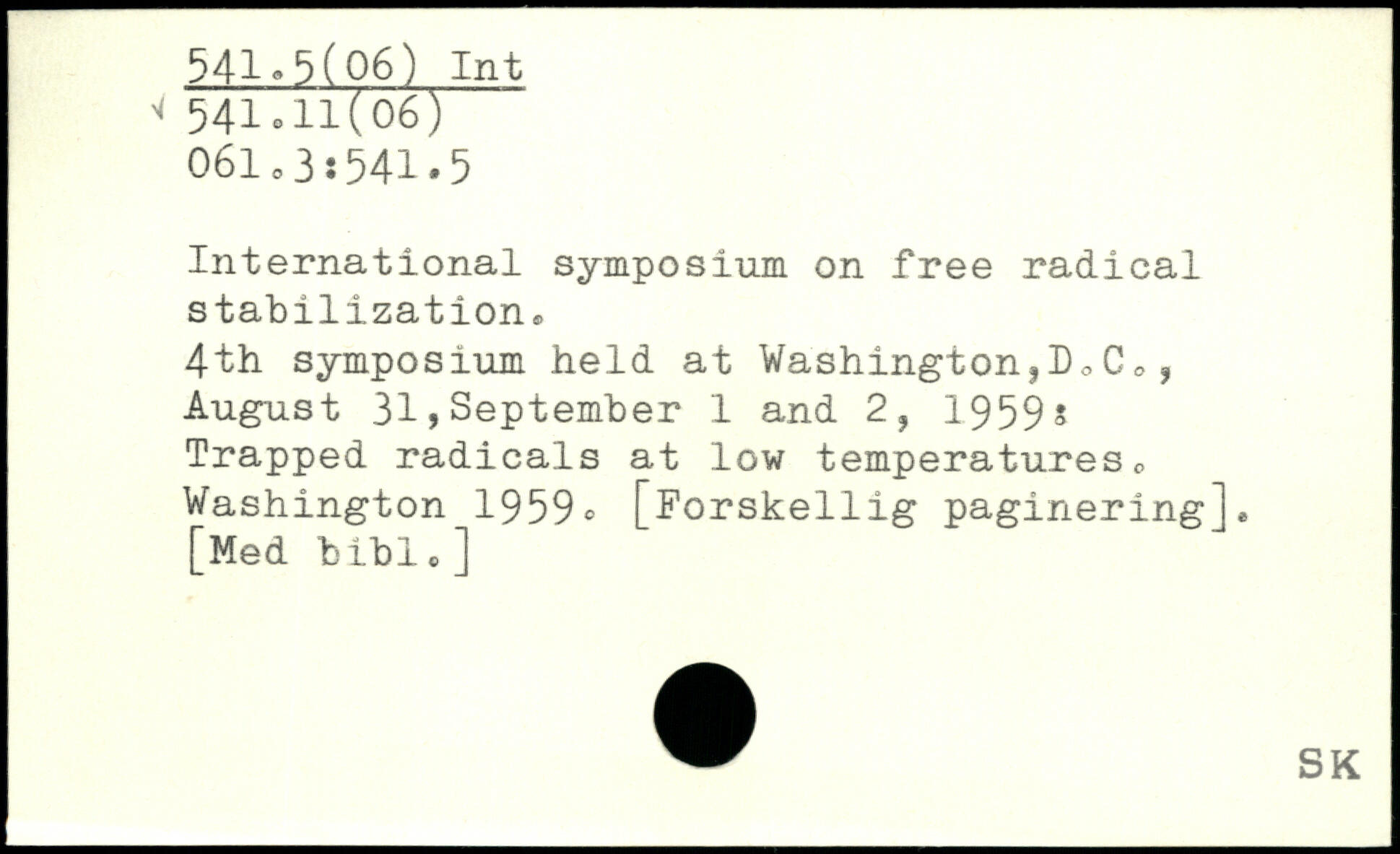 International symposium on free radical stabilization® 4th symposium held at Washington,!)® C<>, August 31,September 1 and 2, 1959s Trapped radicals at low temperatures®