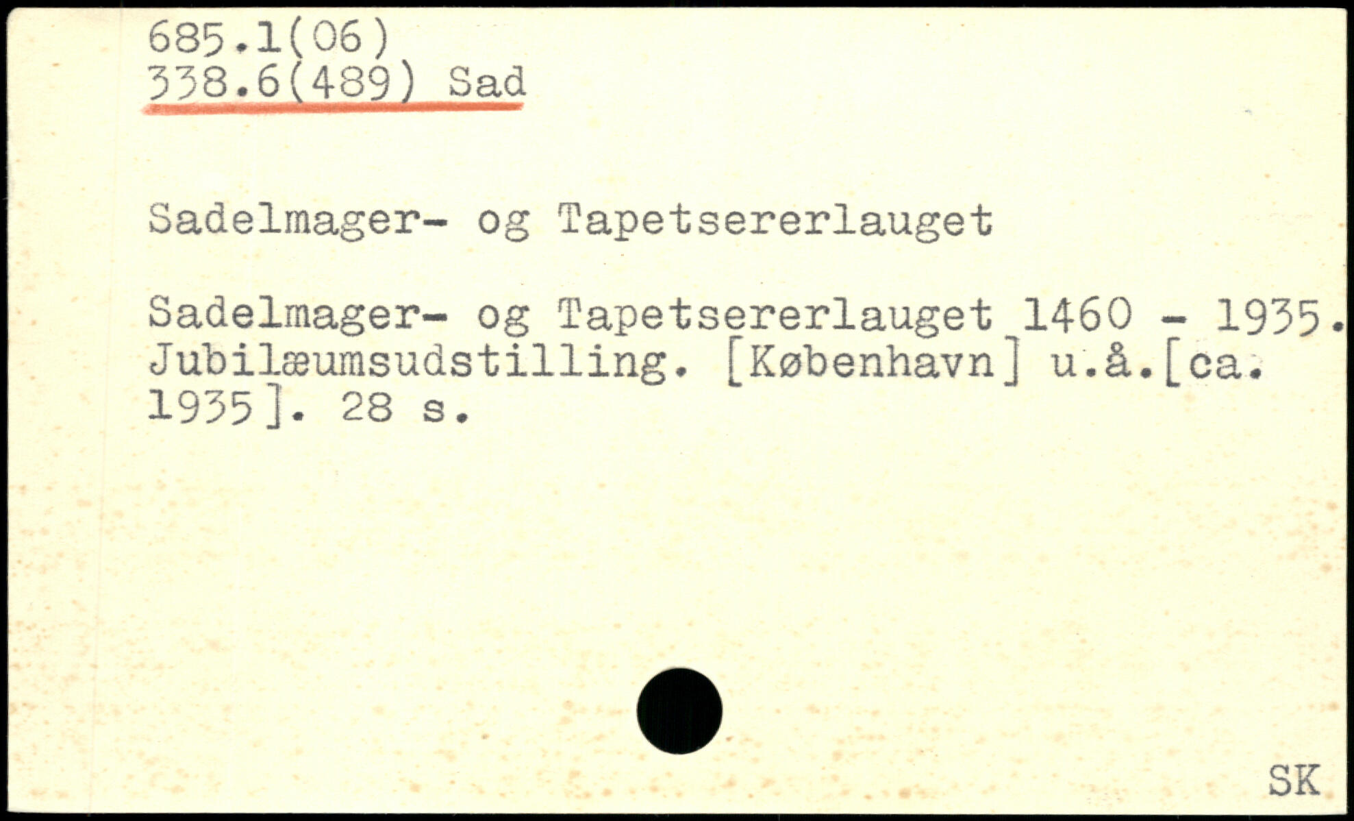 Sadelmager- og Tapetsererlauget 1460 - 1935-Jubilæumsudst1111ng.