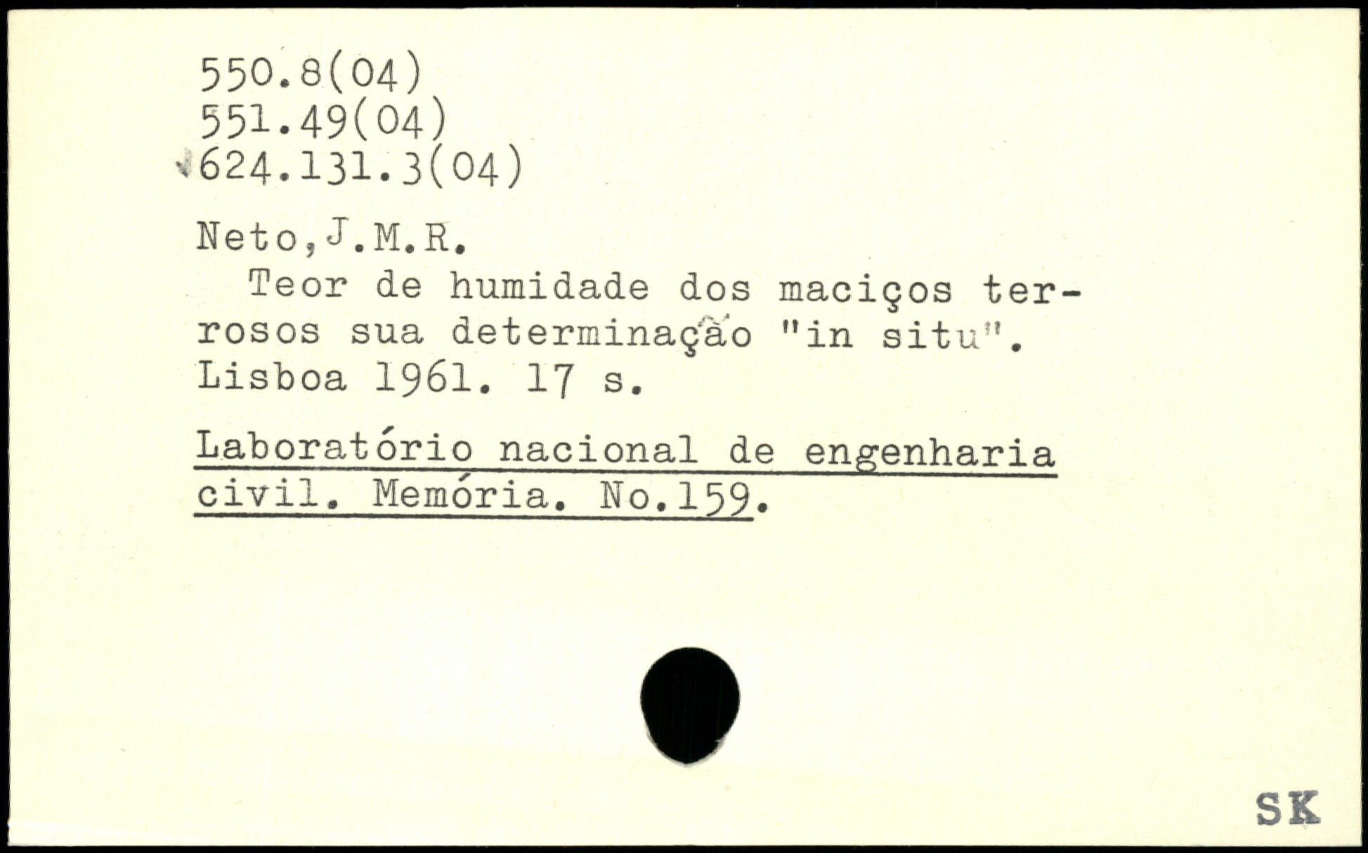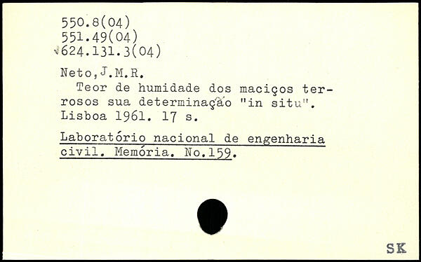 Teor de humidade dos maciços ter-rosos sua det erminaç'ao "in situ". Lisboa 1961.