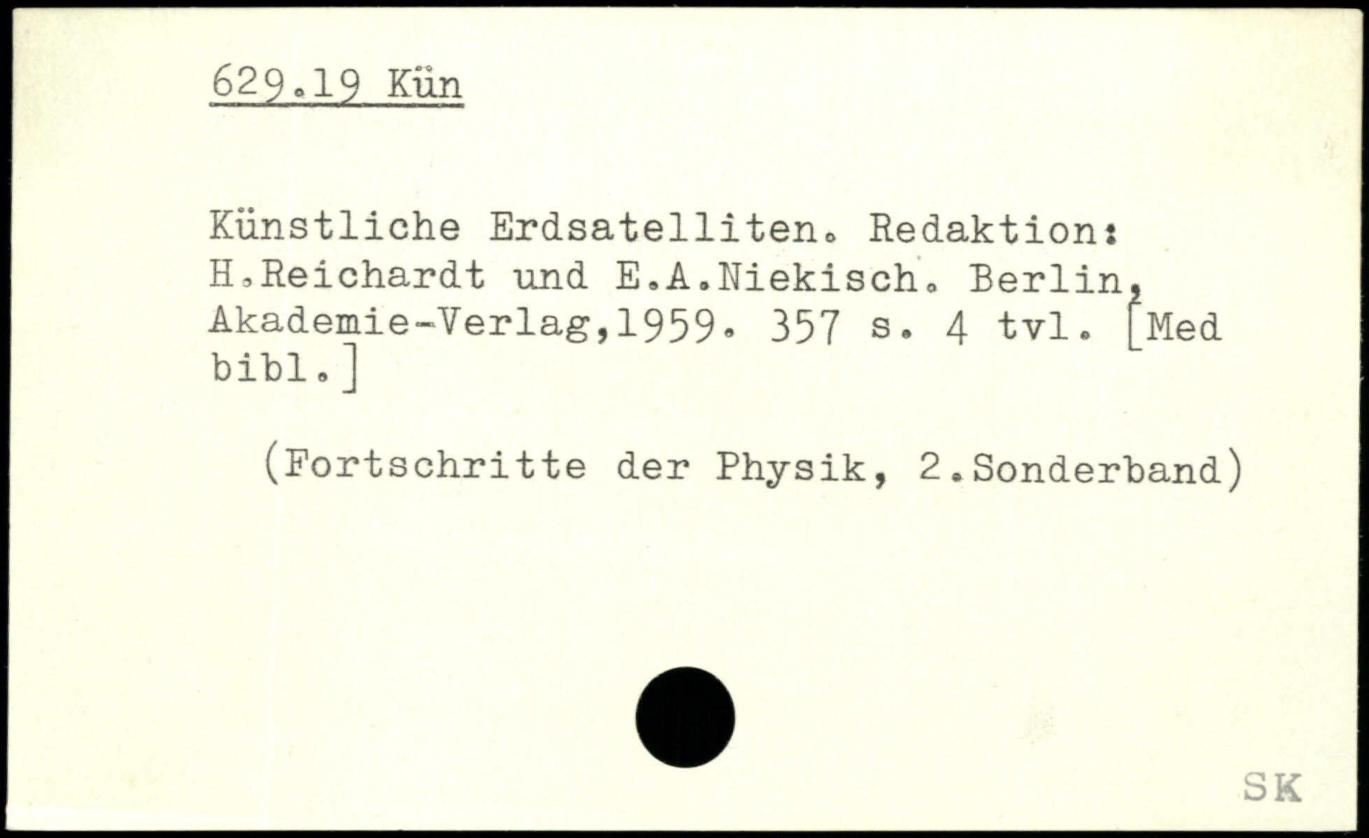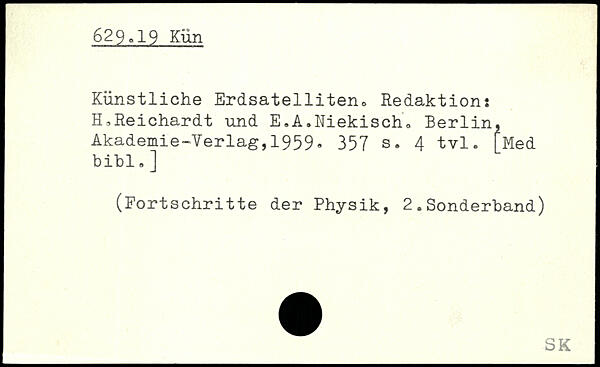 Künstliche Erdsatelliten. Redaktion. H.Reichardt und E.A.Niekisch.