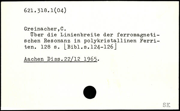 Uber die Linienbreite der ferromagnetischen Resonanz in polykristallinen Ferri-ten.