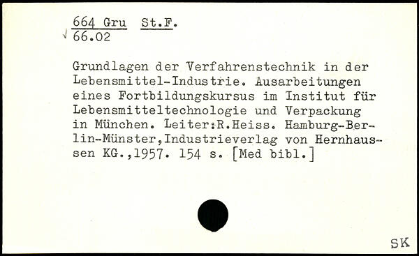 Grundlagen der Verfahrenstechnik in der Lebensmittel-Industrie. Ausarbeitungen eines Fortbildungskursus im Institut für Lebensmitteltechnologie und Verpackung in München. LeitersR.Heiss.