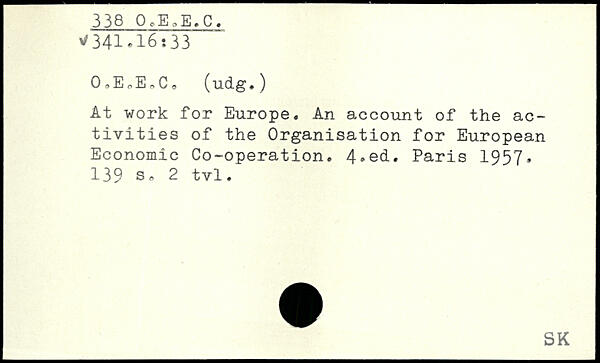 0,EoE,C, (udg.) At work for Europe. An account of the activities of the Organisation for European Economic Co-operation.