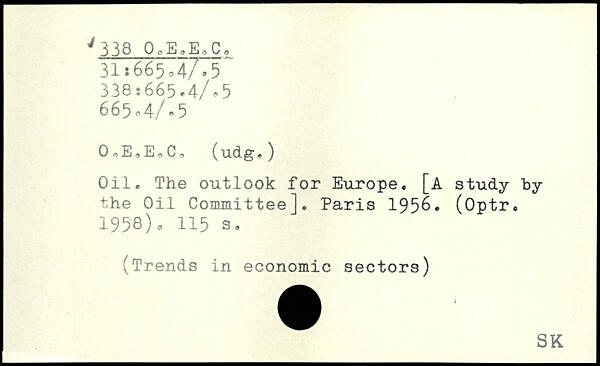 0,E,EoC, (udg,) Oil. The outlook for Europe. [A study by the Oil Committee].