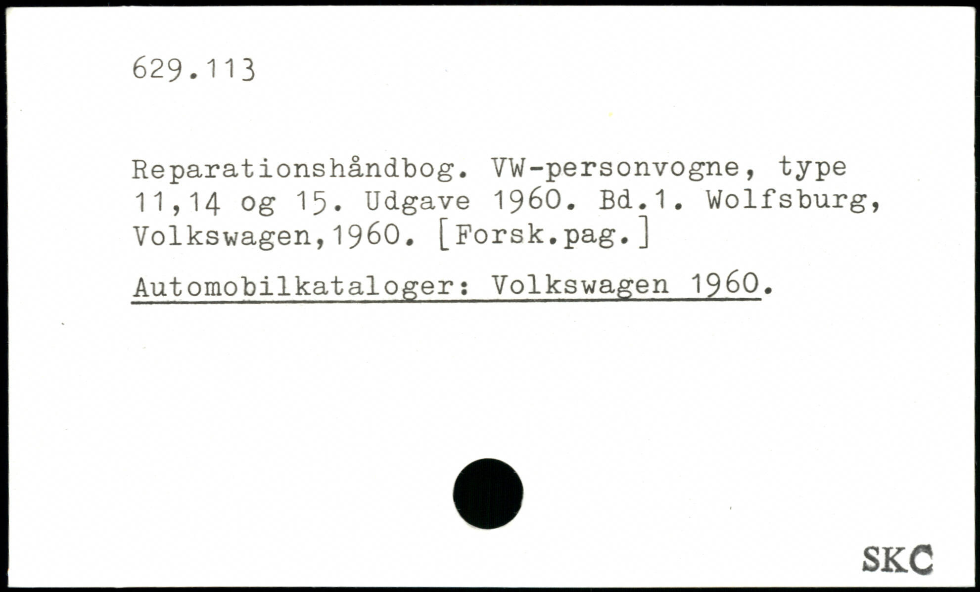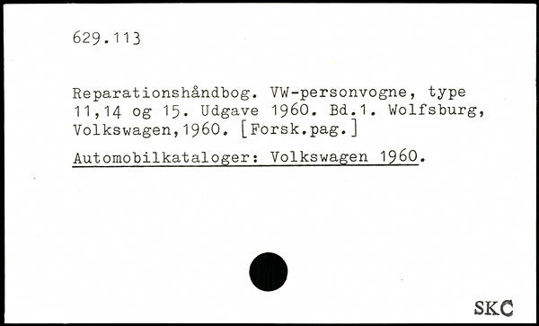 Reparationshåndbog. VW-personvogne, type 11,14 og 15. Udgave 1960.