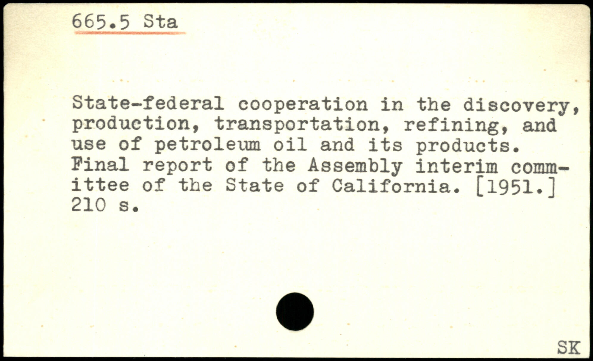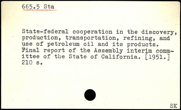 State-federal cooperation in the discovery, production, transportation, refining, and use of petroleum oil and its products. Final report of the Assembly interim committee of the State of California. [1951.1