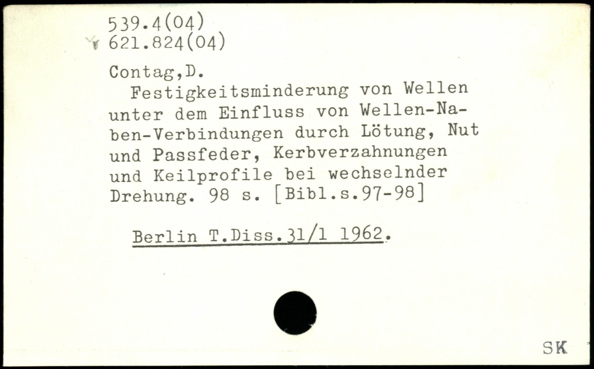 Festigkeitsminderung von Wellen unter dem Einfluss von Wellen-Na-ben-Verbindungen durch Lötung, Nut und Passfeder, Kerbverzahnungen und Keilprofile bei wechselnder Drehung.
