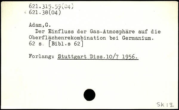 Der Einfluss der Gas-Atmosphäre auf die Oherflächenrekombination bei Germanium