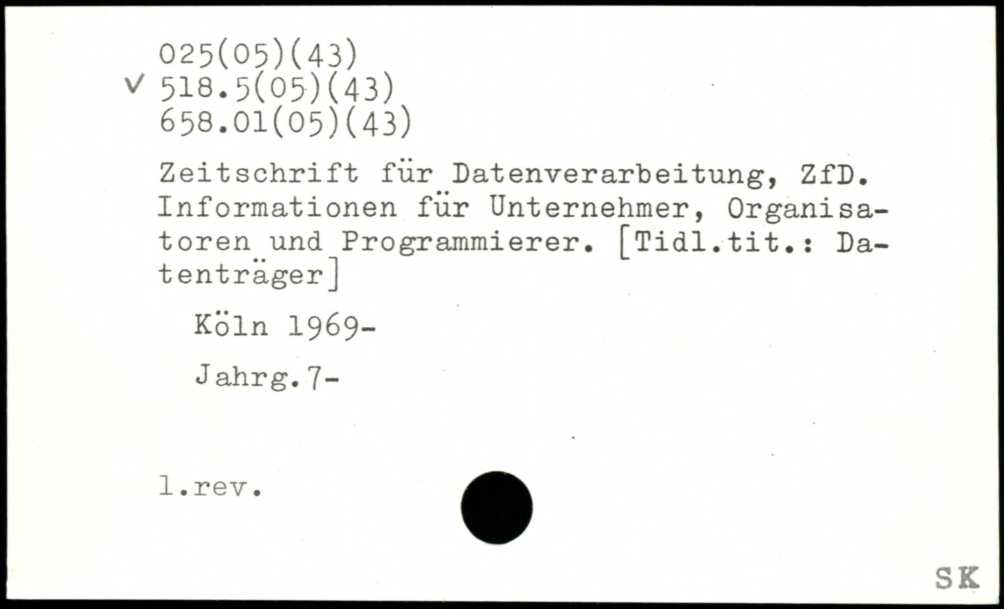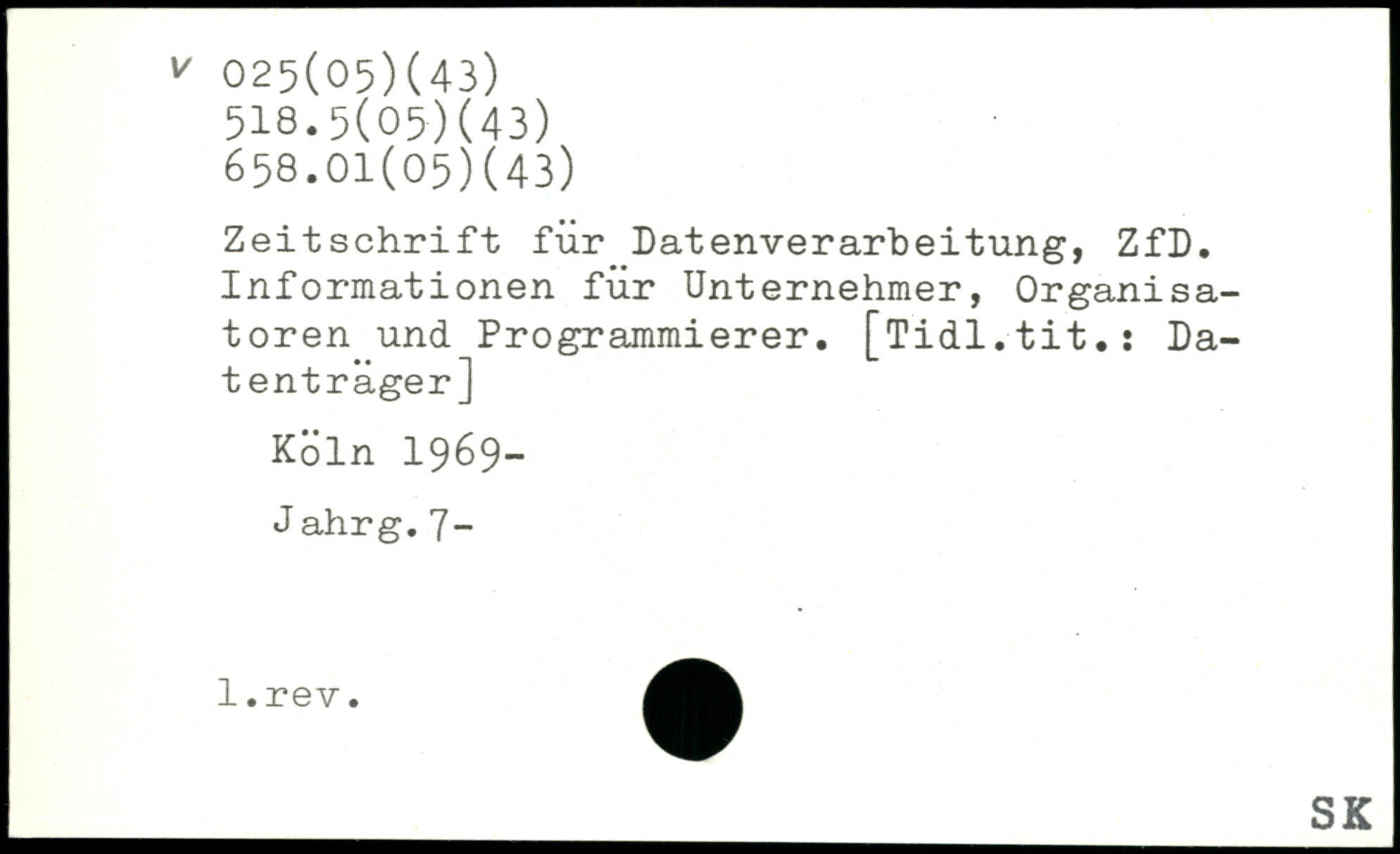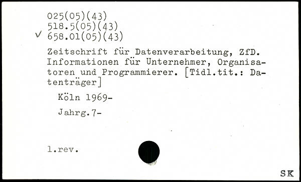 Zeitschrift für Datenverarbeitung, ZfD. Informationen für Unternehmer, Organisatoren und Programmierer.