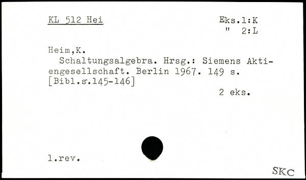 Schaltungsalgebra. Hrsg.: Siemens Aktiengesellschaf t.