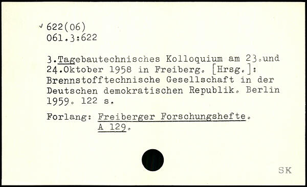 3.Tagebautechnisches Kolloquium am 23,und 24.Oktober 1958 in Freiberg, [Hrsg.js Brennstofftechnische Gesellschaft in der Deutschen demokratischen Republik